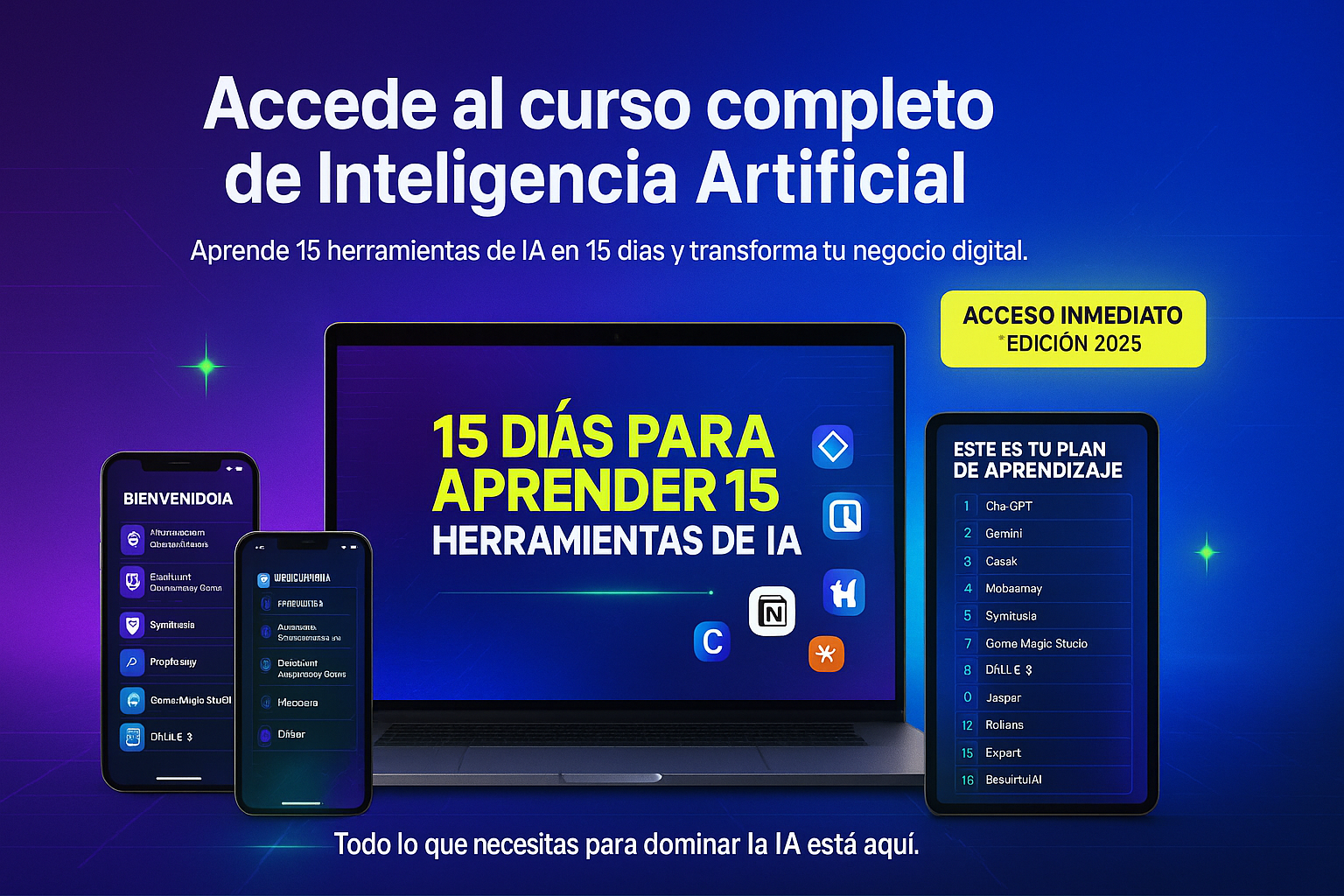 DOMINA 15 HERRAMIENTAS DE INTELINGENCIA ARTIFICIAL EN 15 DÍAS POR MENOS DE $1 AL DÍA